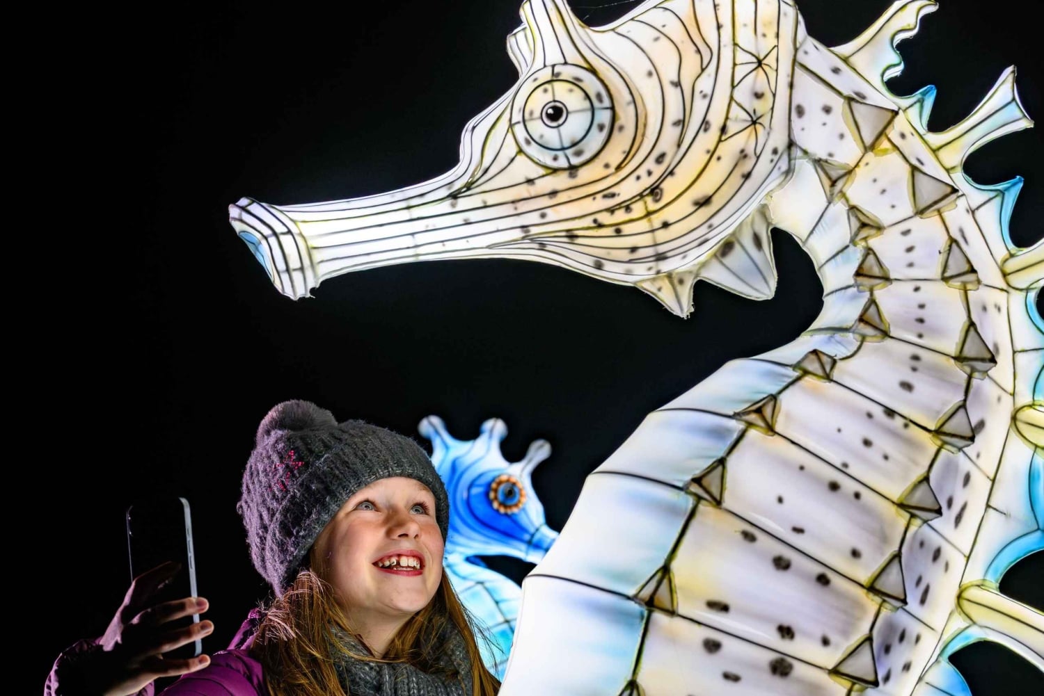 Giant Lanterns-eventet kører i 60 fortryllende nætter fra 14. november 2025 til 22. februar 2026 og tilbyder en virkelig fordybende oplevelse for alle aldre. Dette familievenlige skuespil byder på blændende lanterner med undervandstema, fra charmerende pingviner til mytiske havvæsener fra sagn og legender, der skaber et lysende kystlandskab. Derudover er der særlige aftener for voksne og stille aftener for dem, der leder efter en mere rolig oplevelse. Edinburgh Zoos kæmpe lanterner er en velgørenhedsorganisation, der beskytter dyrelivet, og de giver en sjov og mindeværdig måde at engagere besøgende i dyrelivet på, samtidig med at de støtter vigtige bevaringsbestræbelser. Hvert lysfyldte skridt gennem stien hjælper med at øge bevidstheden om vigtigheden af at beskytte dyrelivet og deres levesteder, fra koralrev til havfugle og meget mere. Dit besøg bidrager direkte til zooens igangværende bevaringsarbejde i Skotland og globalt, hvilket gør dette til en aften, der er lige så meningsfuld, som den er magisk.Includes