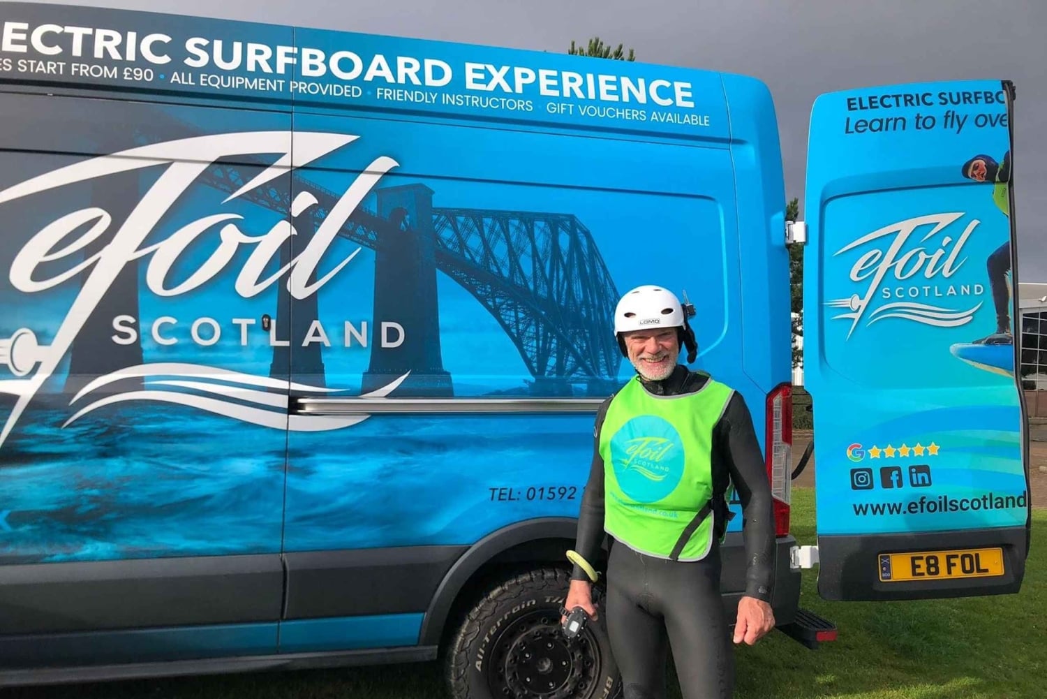 Ven a South Queensferry (a 30 minutos del centro de Edimburgo) y participa en nuestro eFoil: Experiencia de prueba en grupo. Te proporcionaremos todo el equipo, incluidos trajes de neopreno, chalecos salvavidas, escarpines, guantes, casco con micrófono incorporado y tu eFoil. Cámbiate en nuestra furgoneta con calefacción. Nuestros instructores totalmente cualificados te guiarán durante todo el proceso, desde ponerte los trajes de neopreno hasta controlar tu propia tabla de surf eléctrica. Tras una rápida charla de seguridad, te llevaremos al agua. Te proporcionaremos agua potable, ¡el eFoiling puede dar mucha sed!Important Information